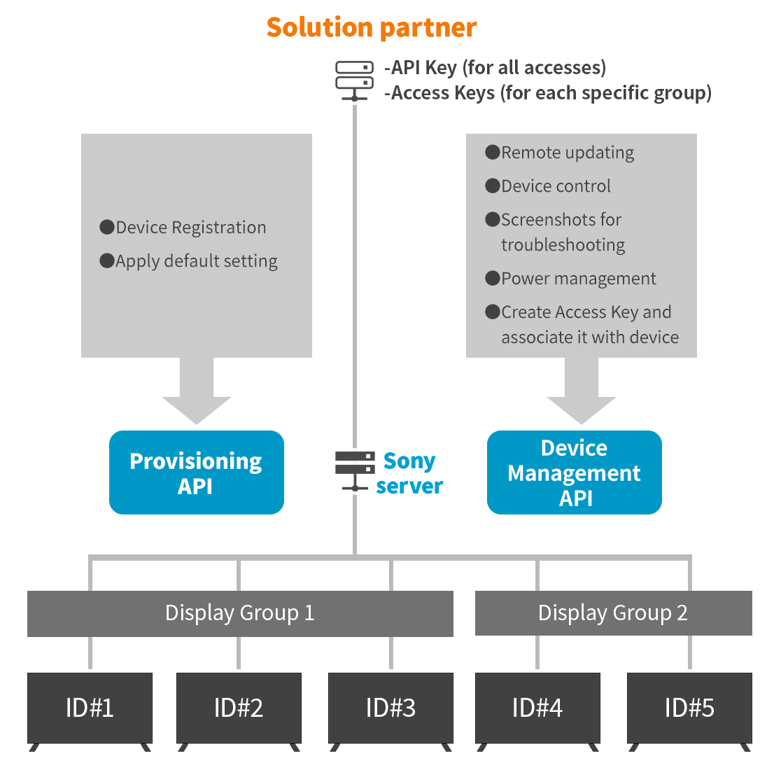 ・The Provisioning API enables the registration of displays and configuration of default settings, among other functions.