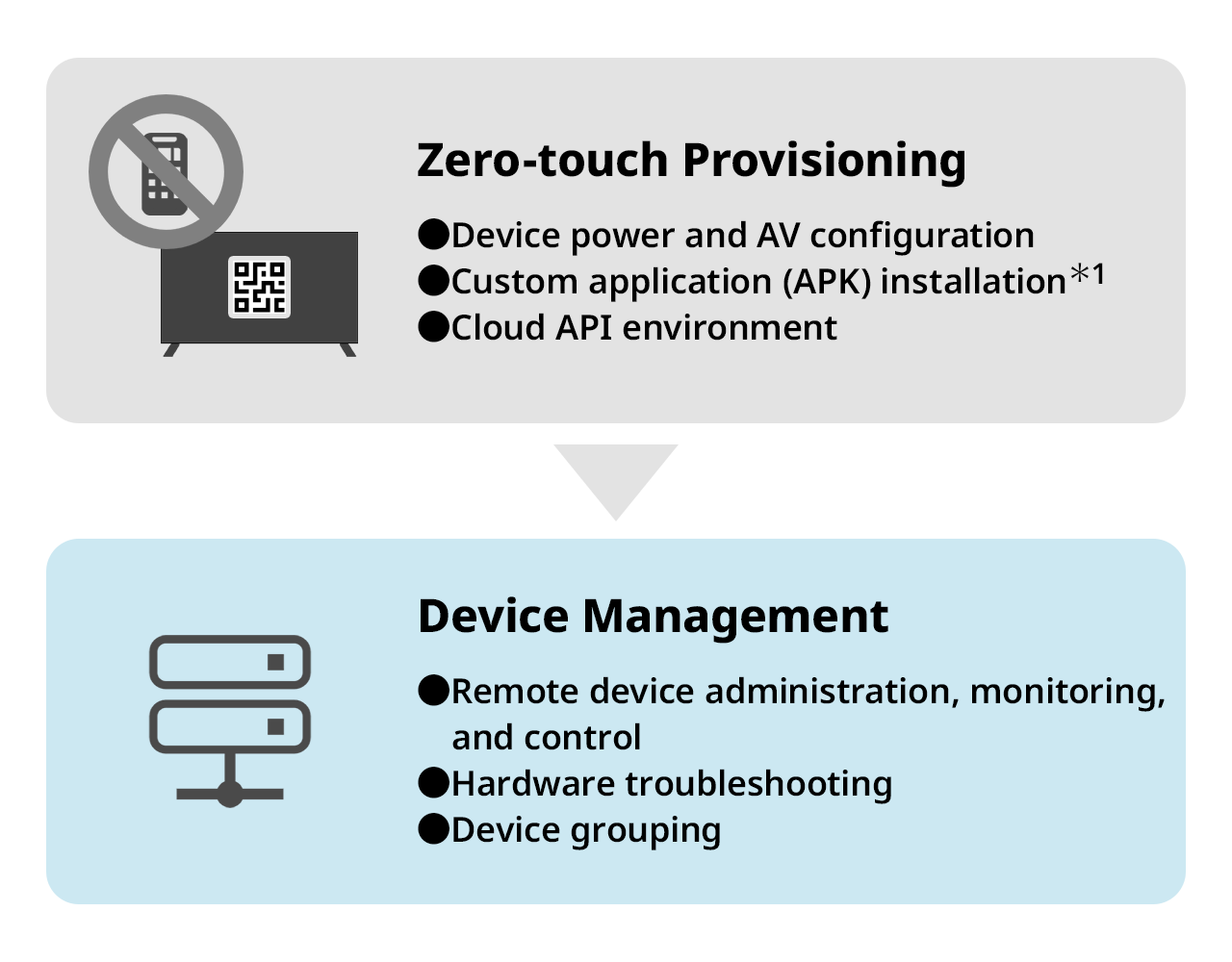*1. Up to 3 preset APK applications can be installed via Zero-touch Provisioning