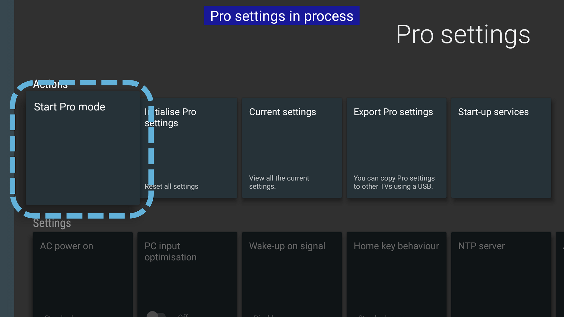 Pro settings > Start Pro mode