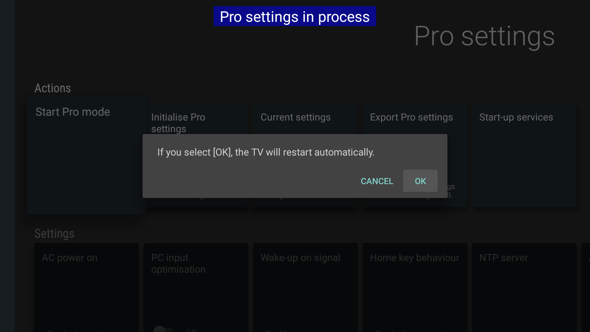 Setting is complete. The display will reboot and switch to Pro mode.