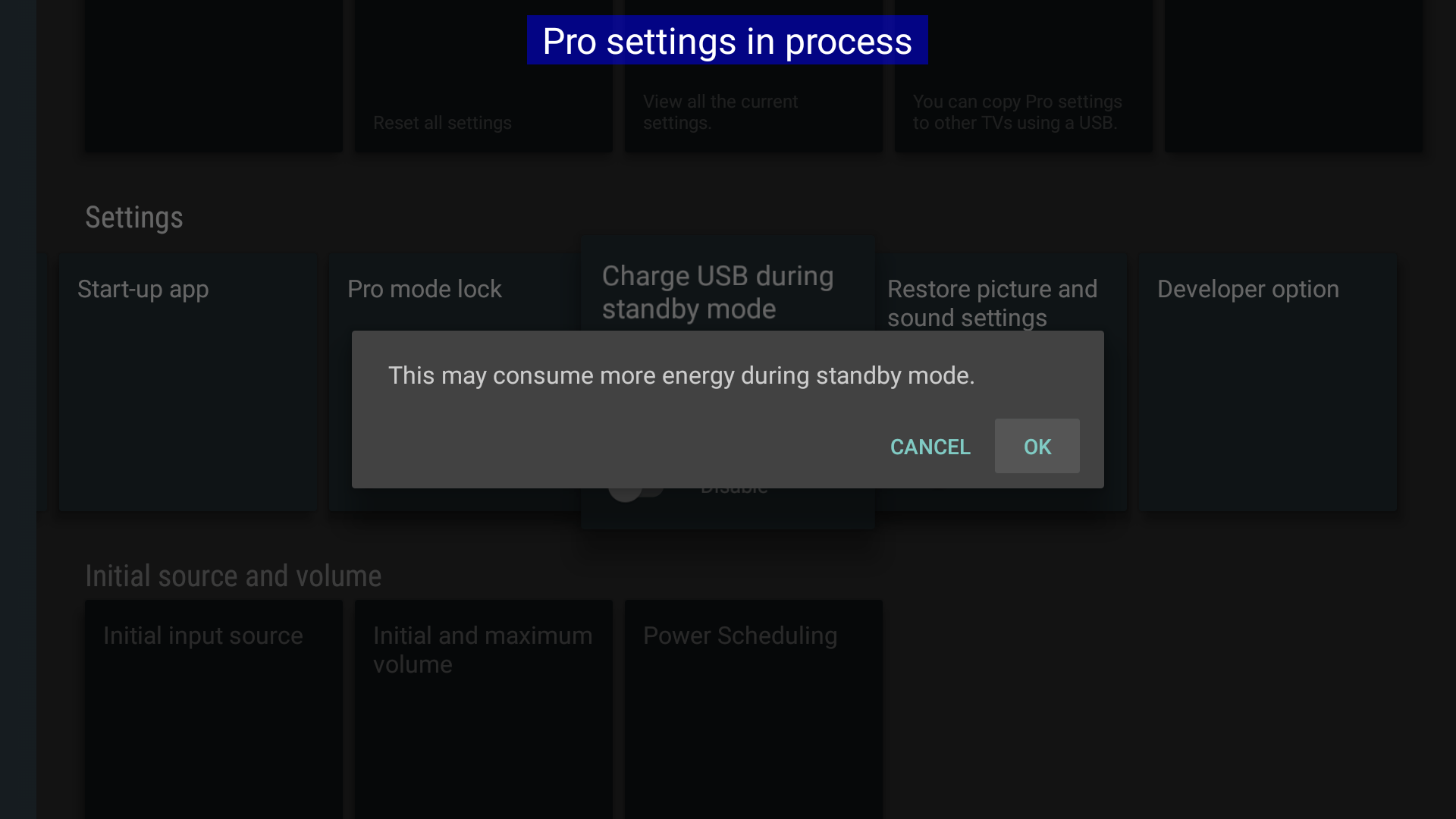 Pro settings > Charge USB during standby mode