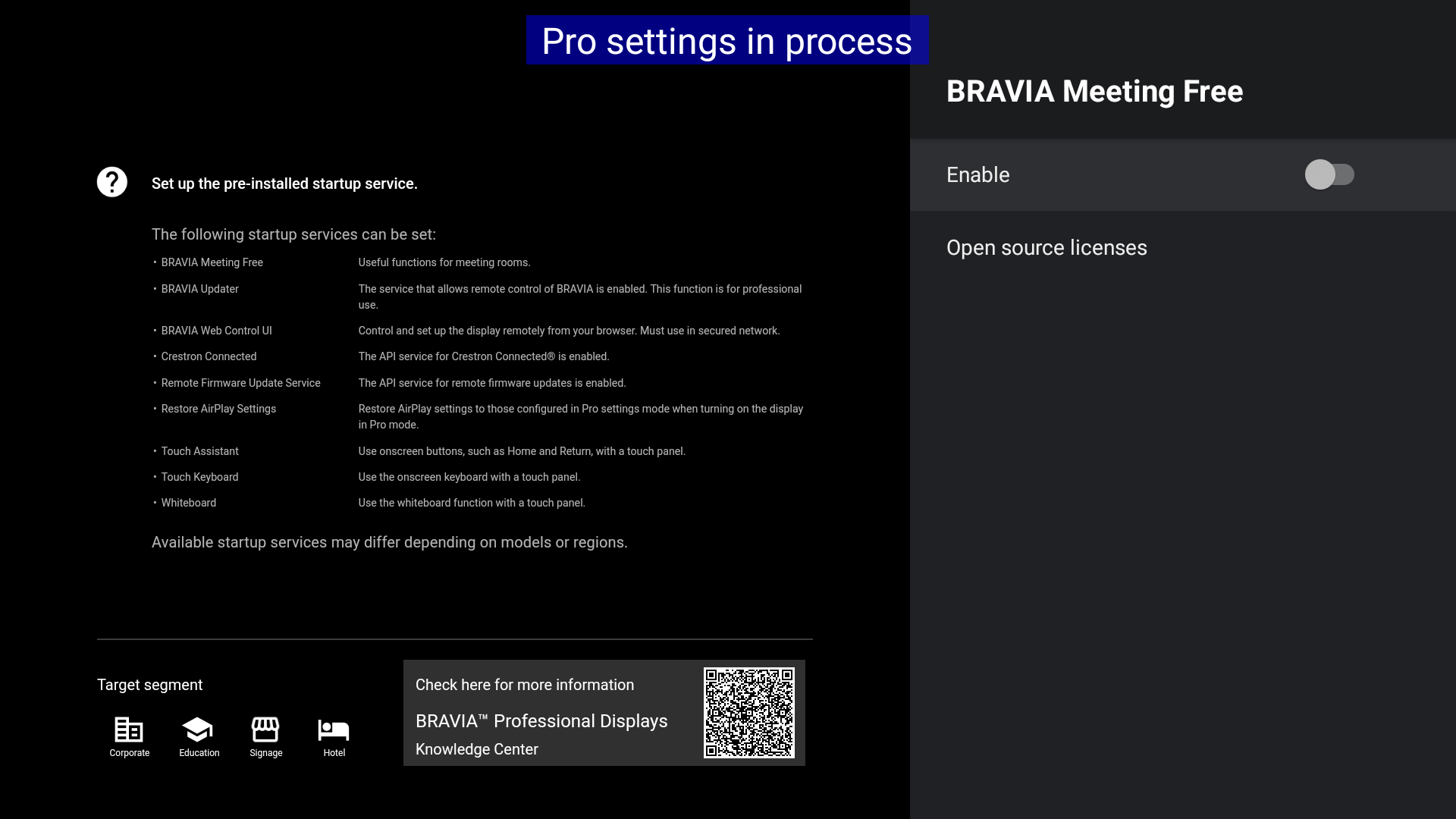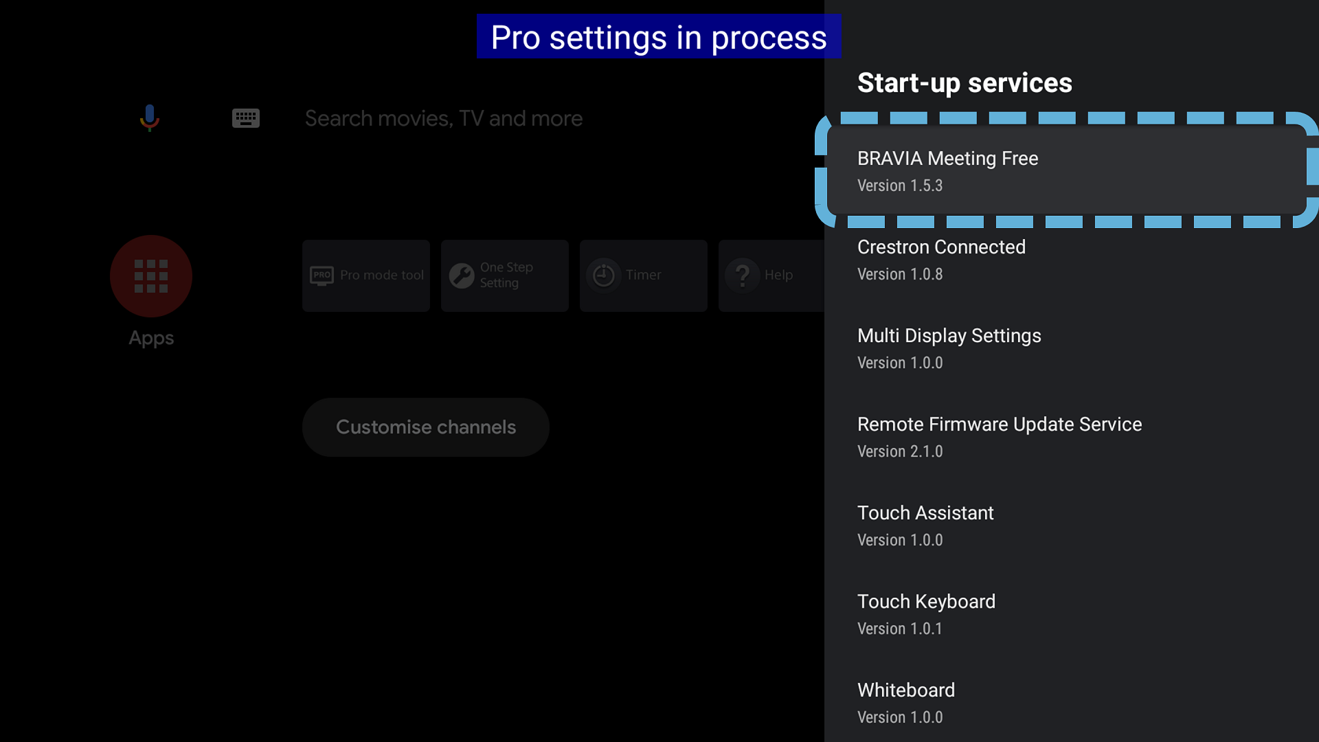 Pro settings > Start-up services