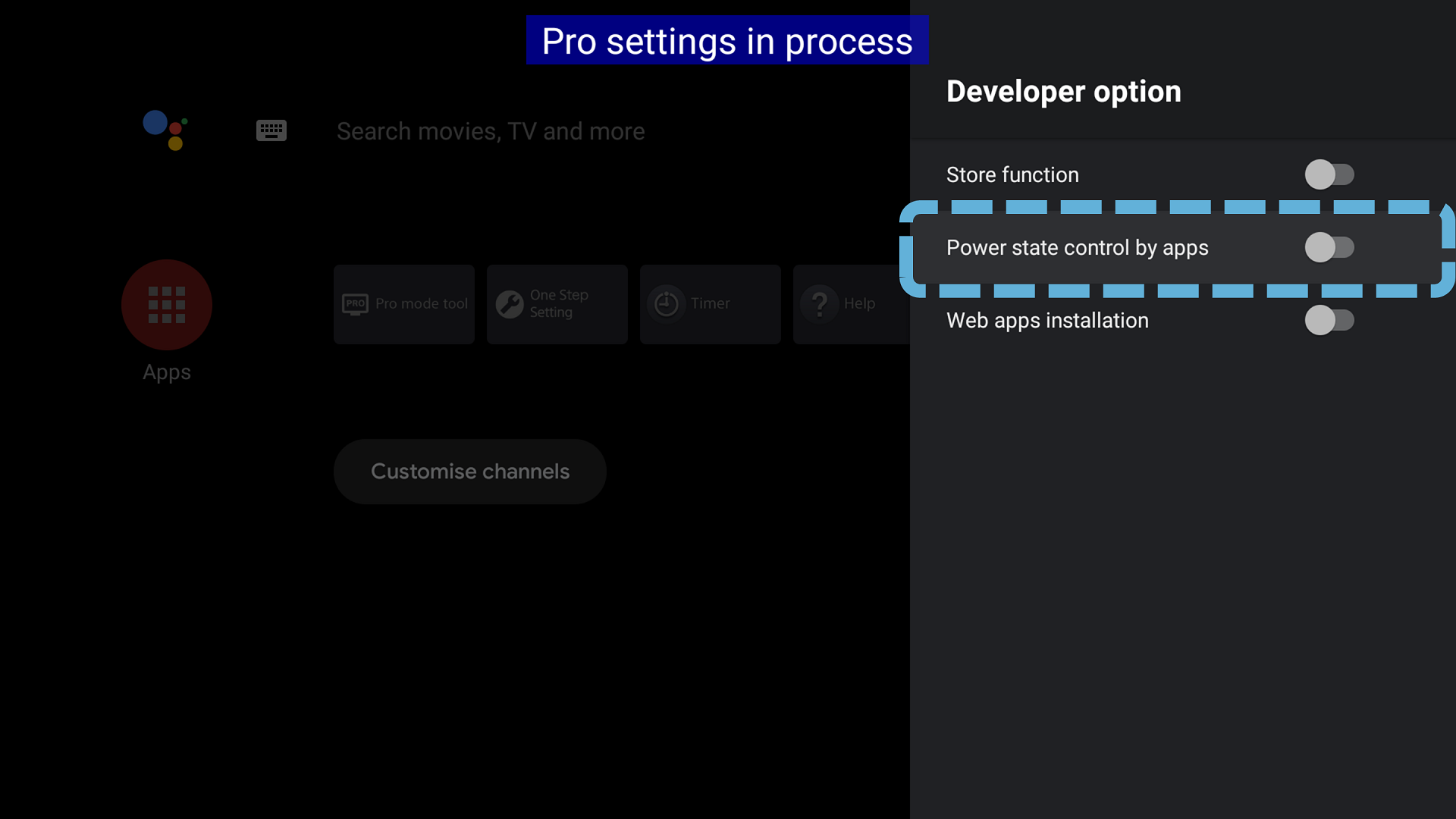 - Action: “com.sony.dtv.b2b.intent.action.POWER_ON”