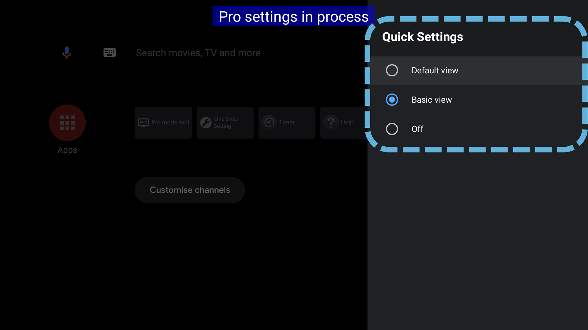 Enable or disable Quick settings. With Quick settings, you can adjust settings, such as image quality, while watching TV programmes and videos.