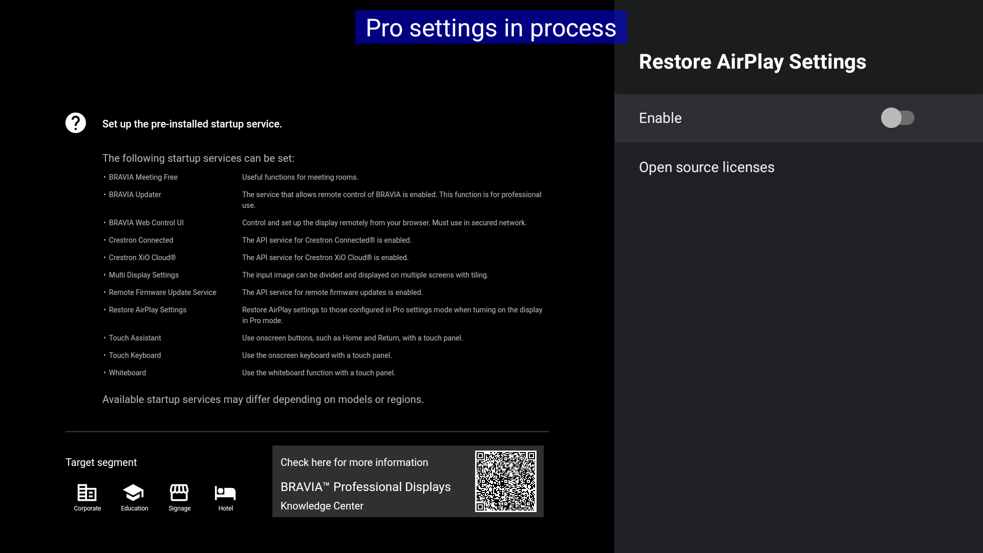 Restore AirPlay settings to those configured in Pro sttings mode when turning on the display in Pro mode.