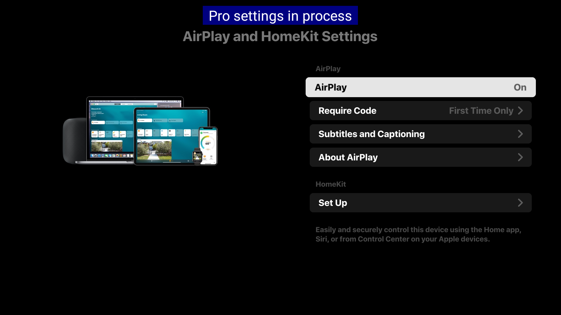 - Once you have switched to the Pro mode, the AirPlay settings are restored when the power is turned on.