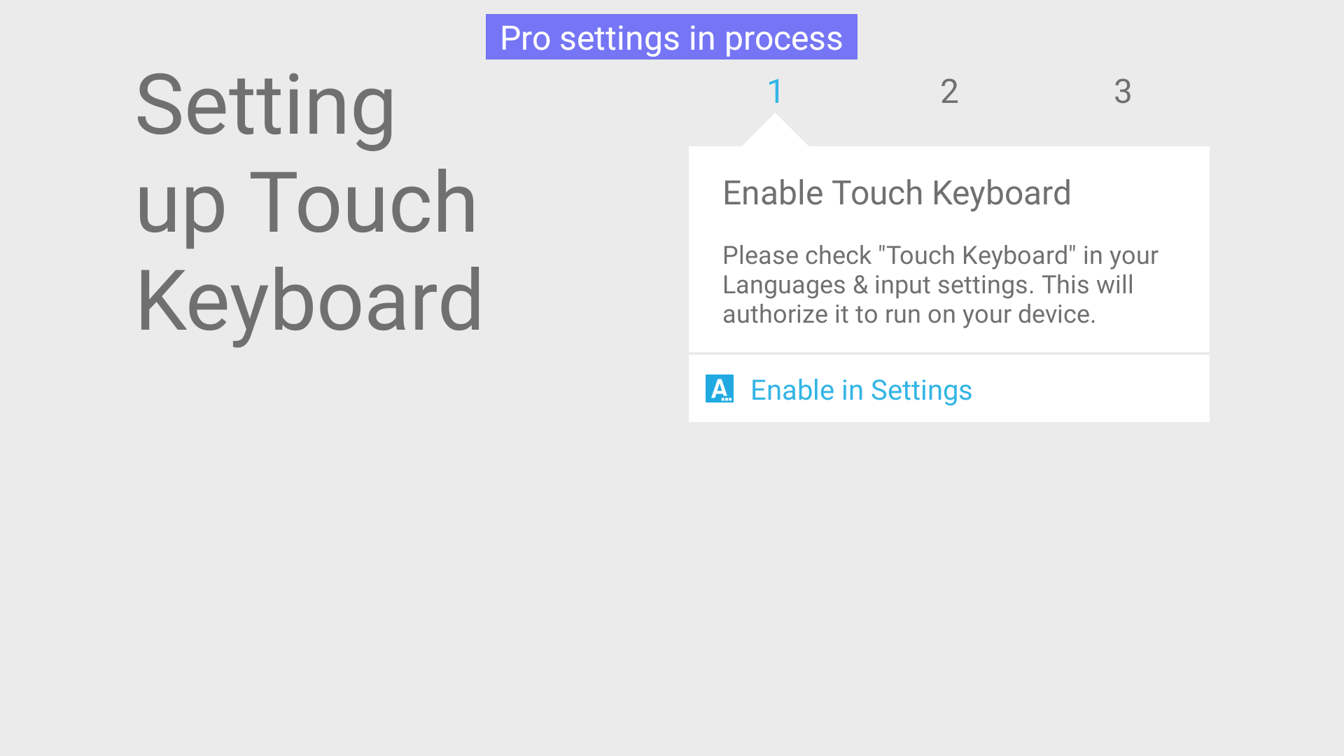 Select Touch Keyboard on Startup services of Pro settings.