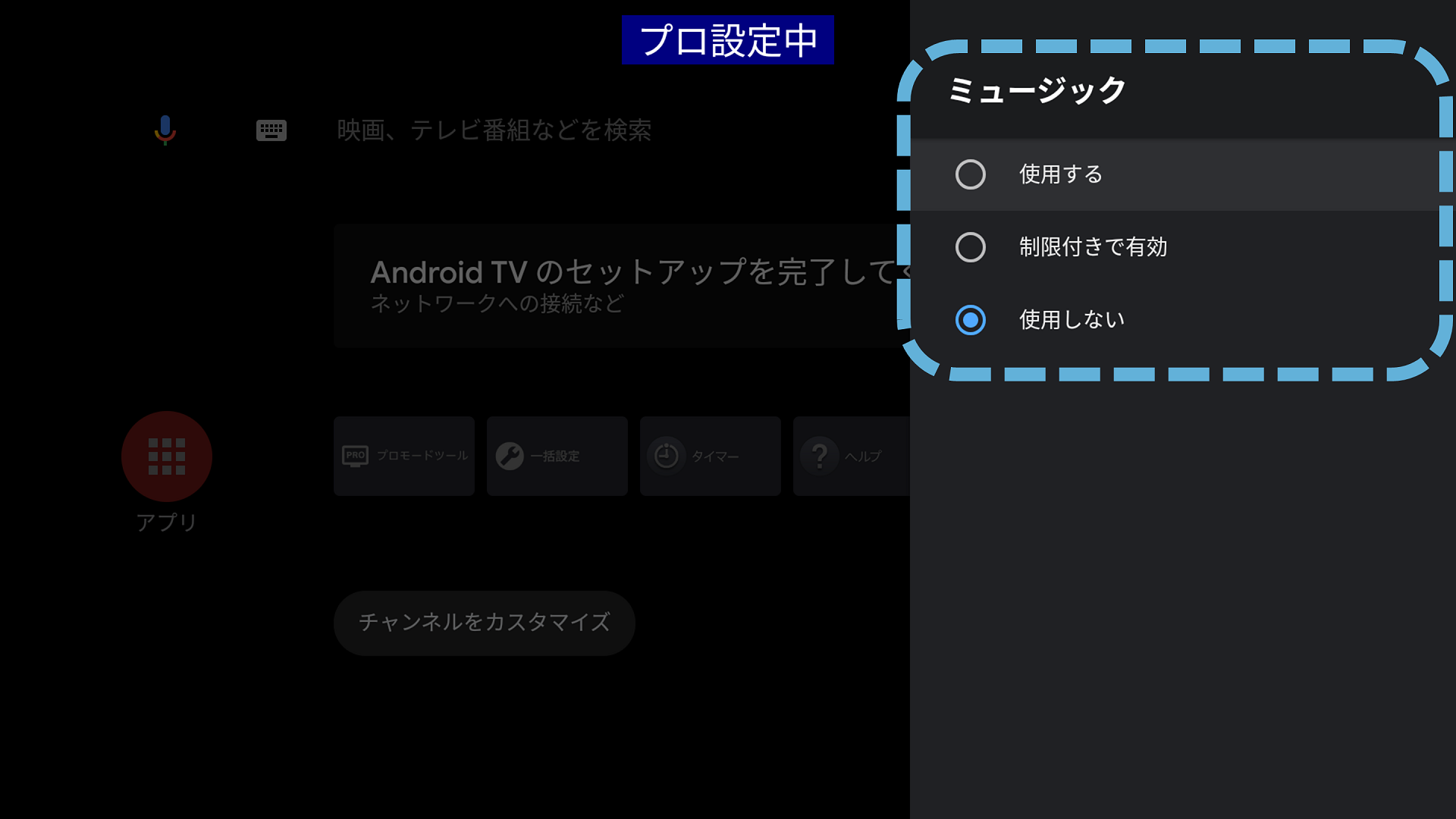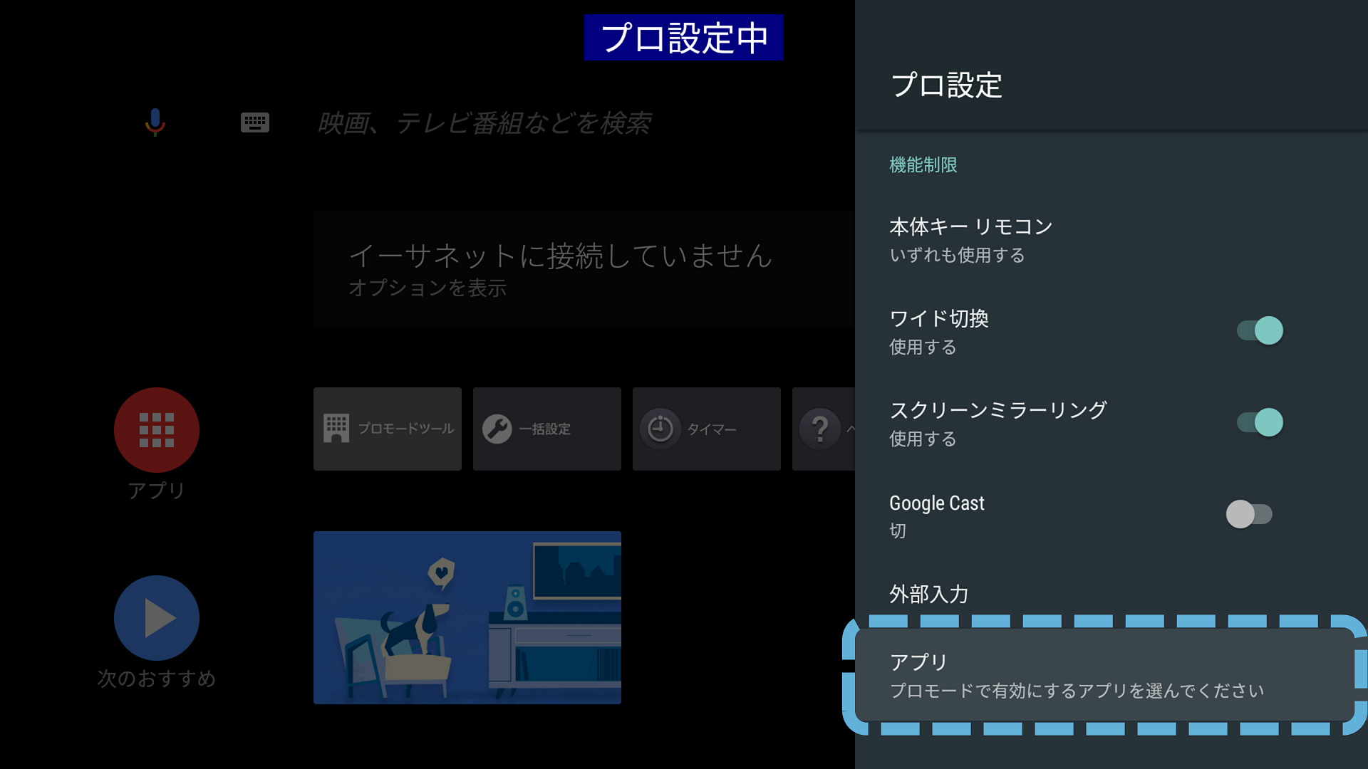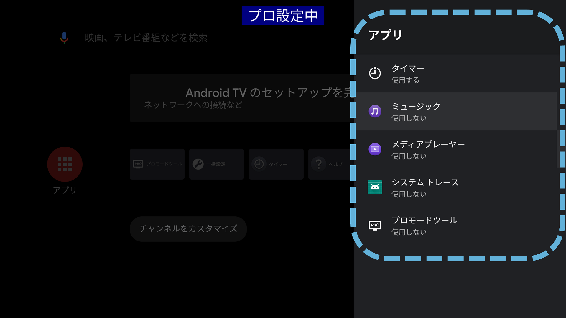 プロ設定 > アプリ