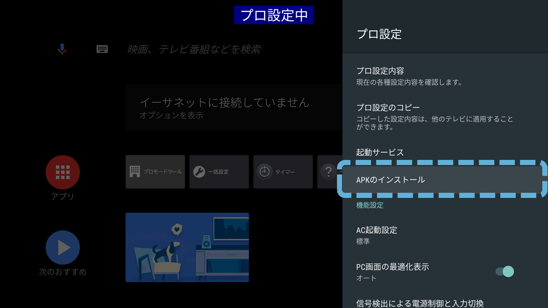 プロ設定 > APKのインストール