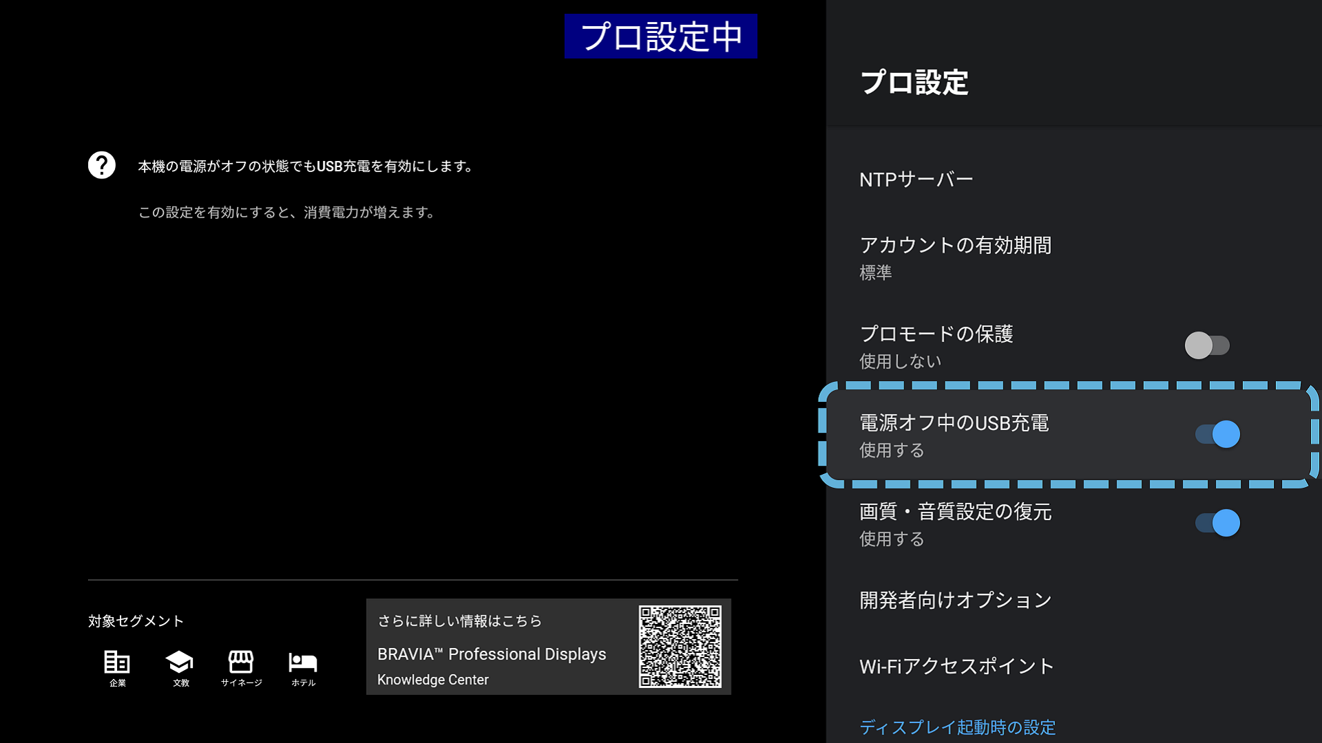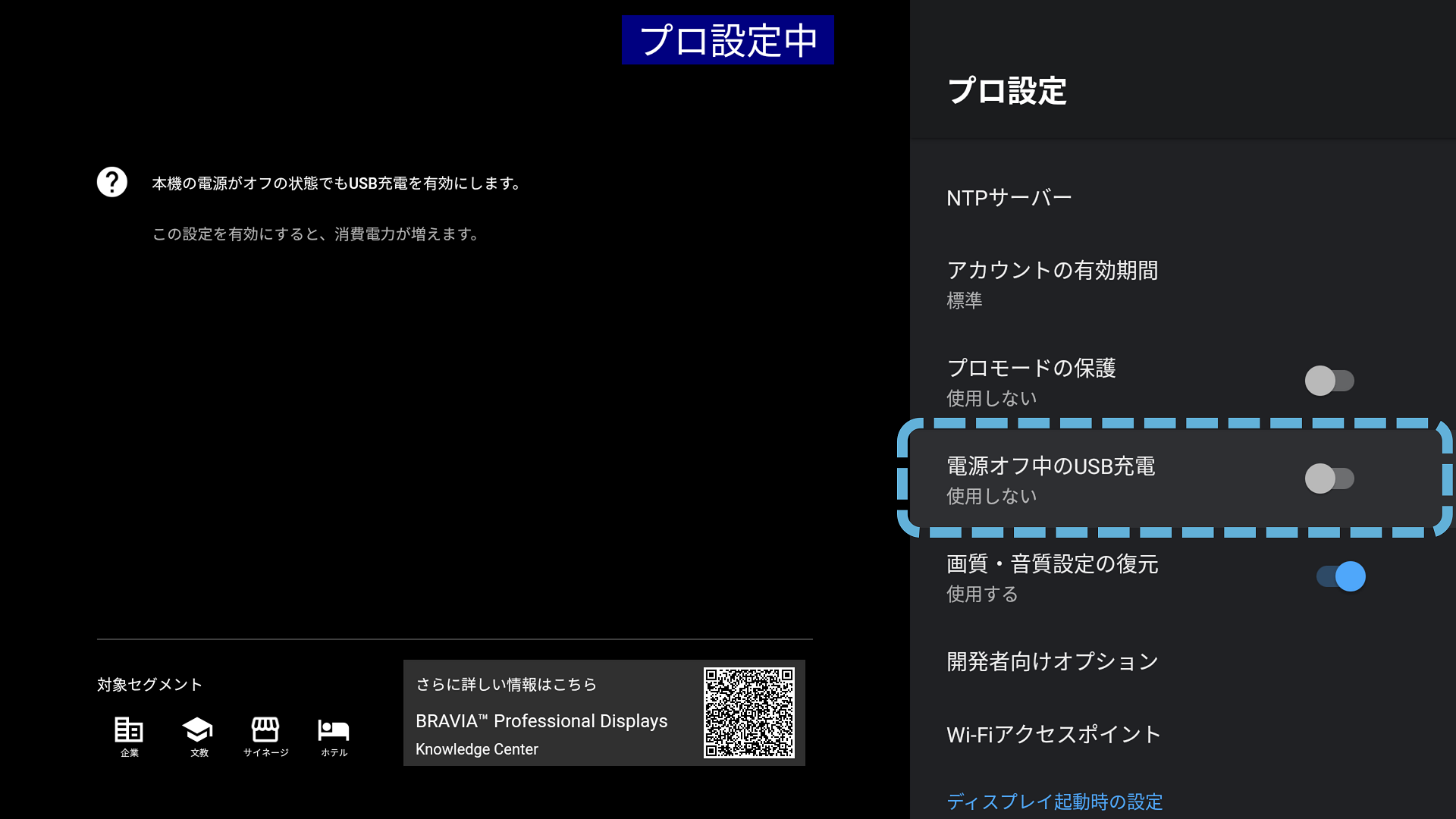 本機の電源がオフの状態でもUSB充電を有効にします。