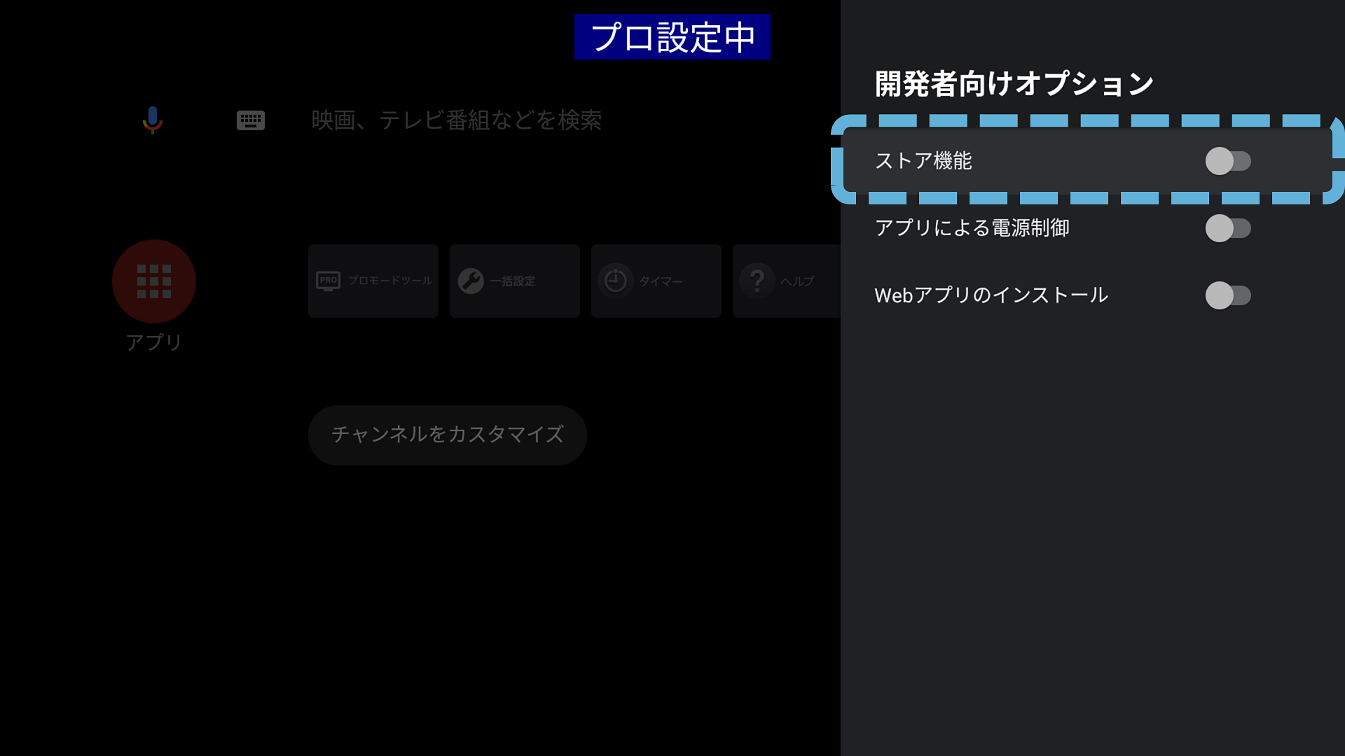 プロ設定 > ストア機能