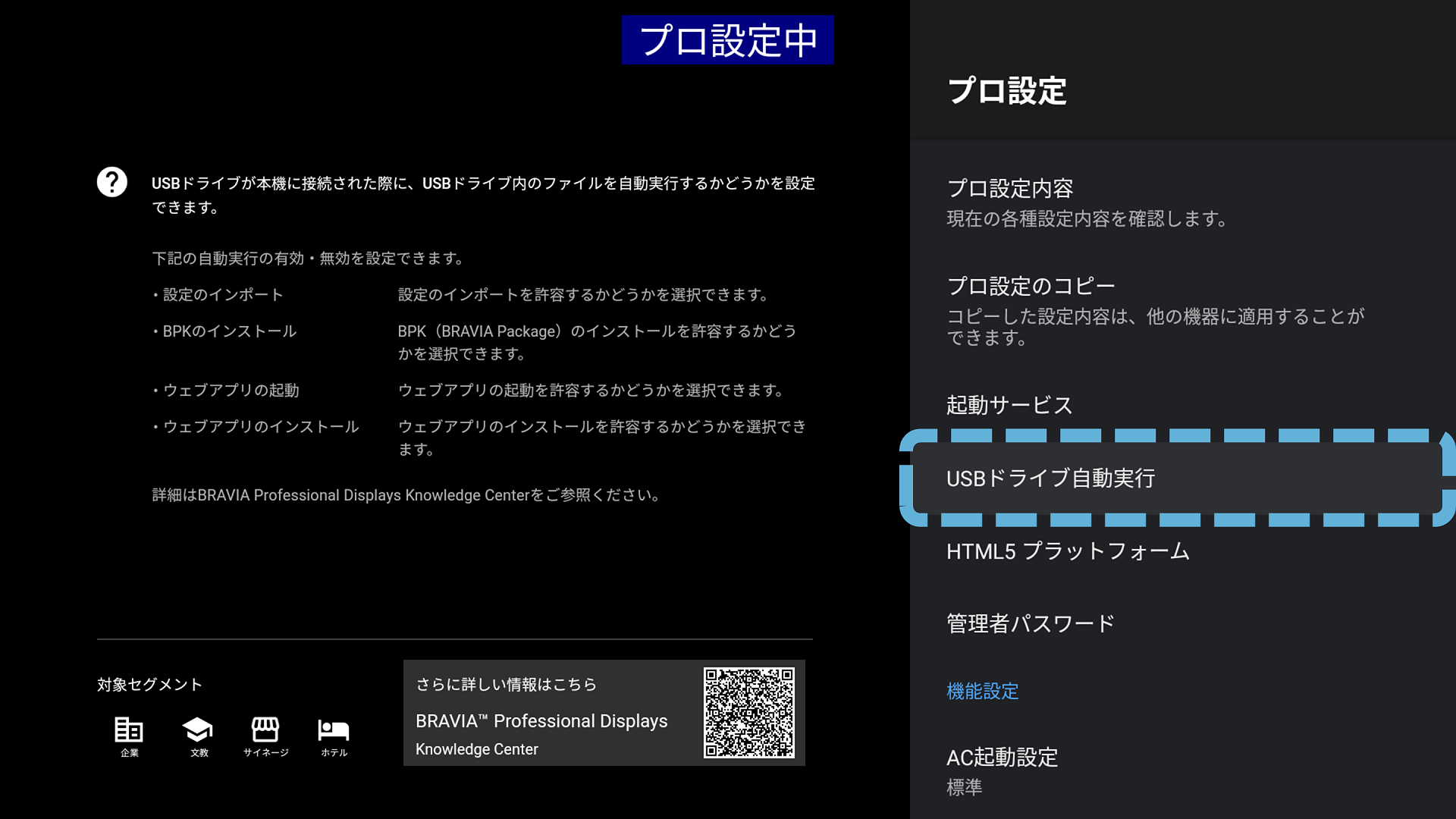 プロ設定 > USBドライブ自動実行