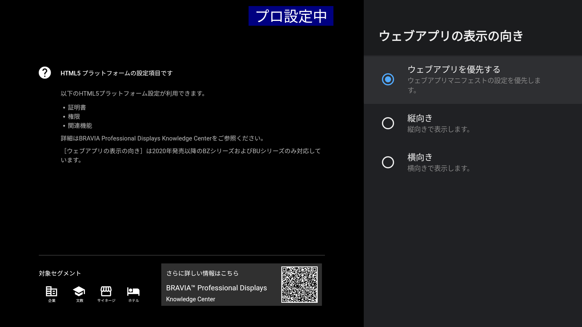 [ウェブアプリの表示の向き] は2020年発売以降のBZシリーズおよびBUシリーズのみ対応しています。