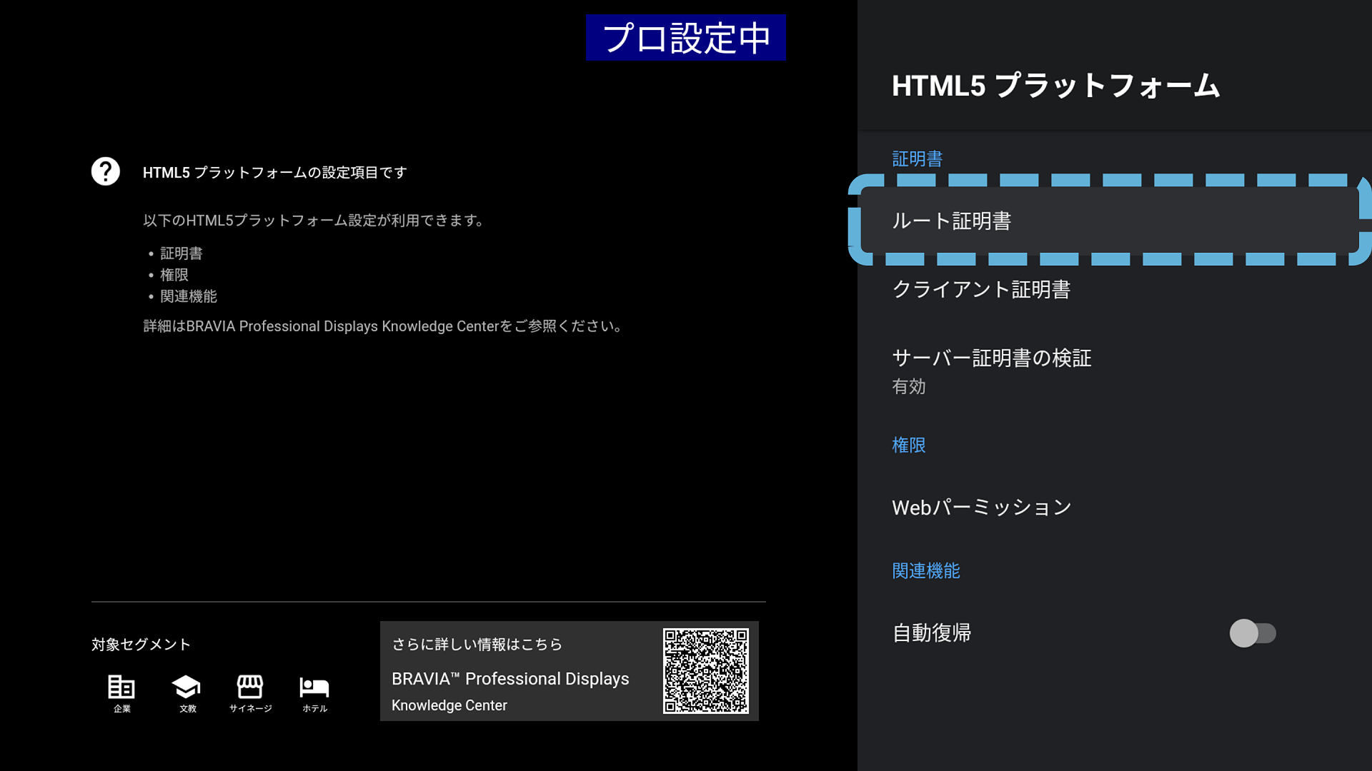 ルート証明書設定 (ルート証明書は、DER 形式のみサポートしています。)