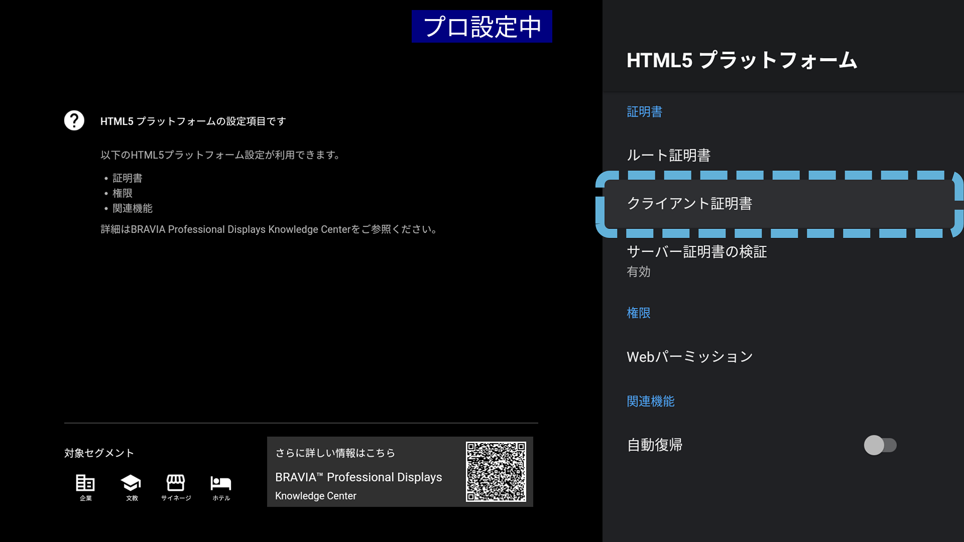 クライアント証明書設定 (クライアント証明書は、PFX 形式のみサポートしています。)