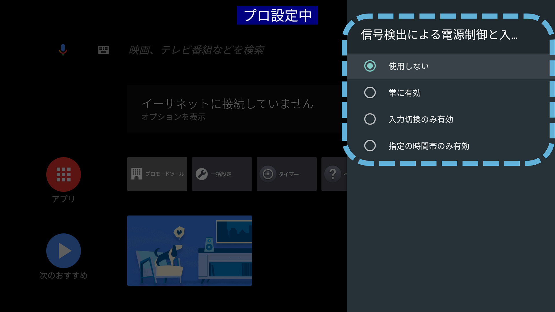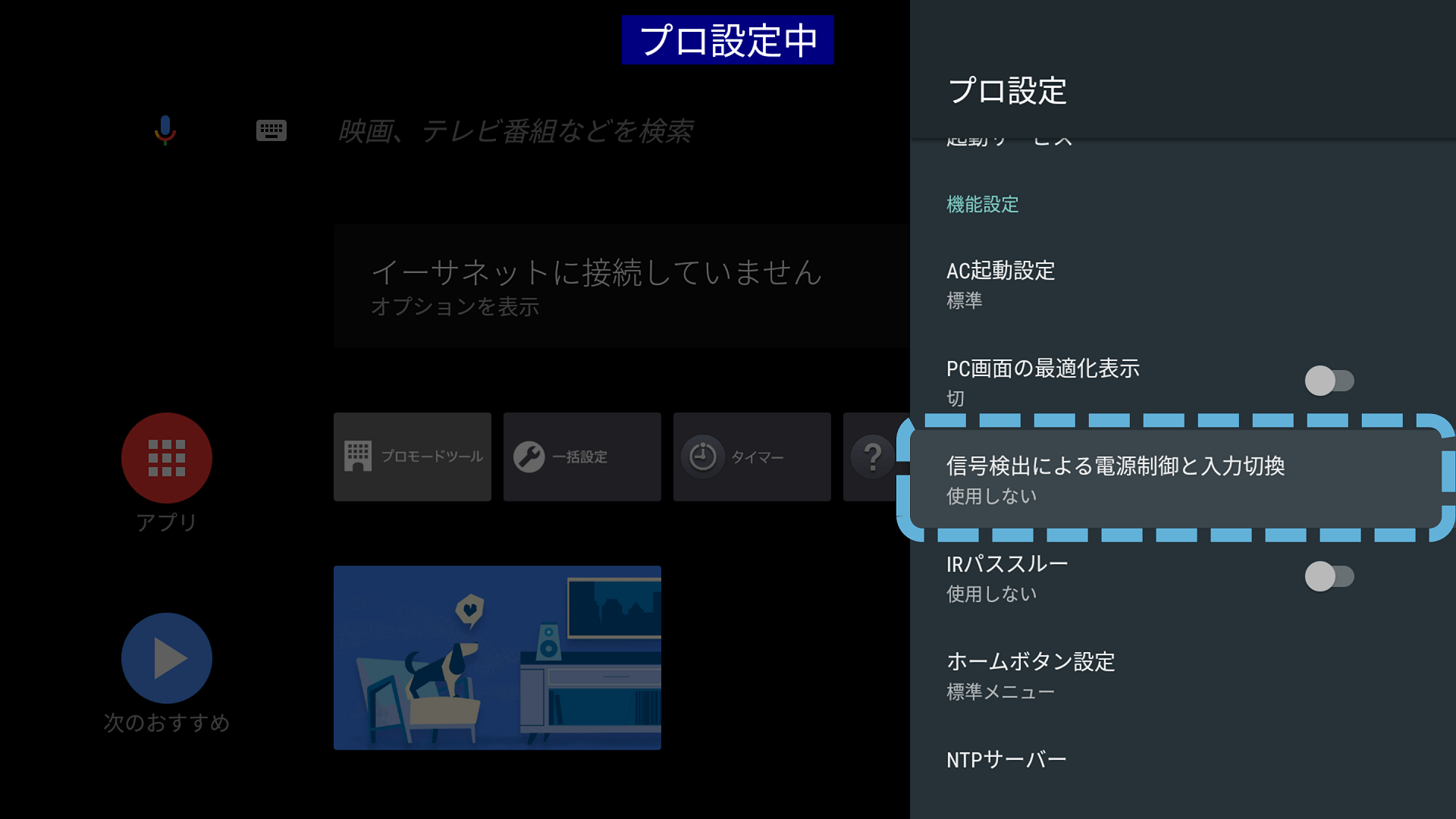 - 入力切換のみ有効:a)の機能のみ有効にし、ディスプレイは自動的に電源OFFになりません。