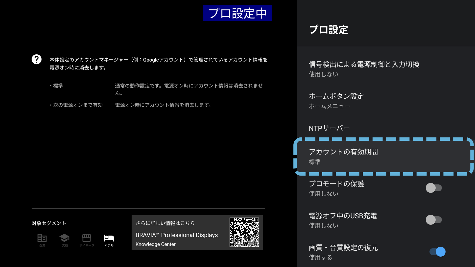 プロ設定 > アカウントの有効期間