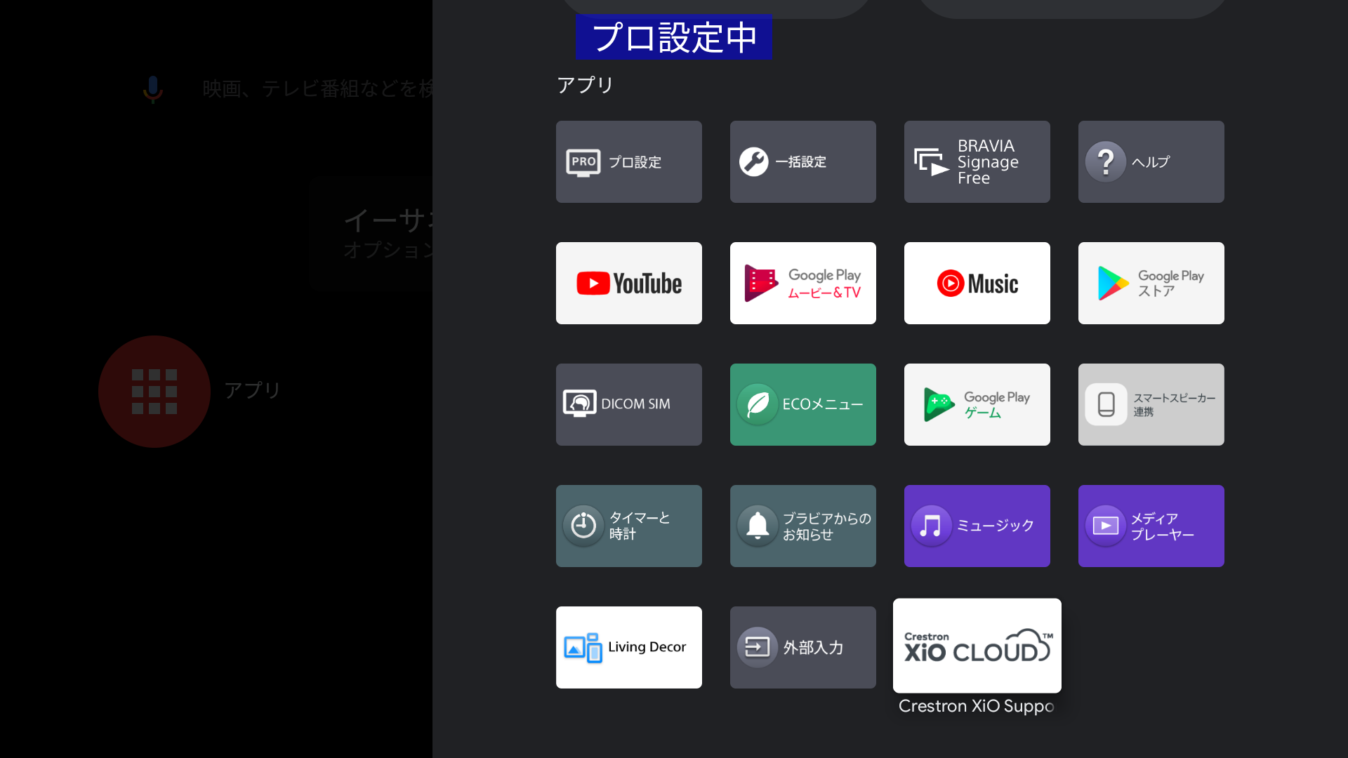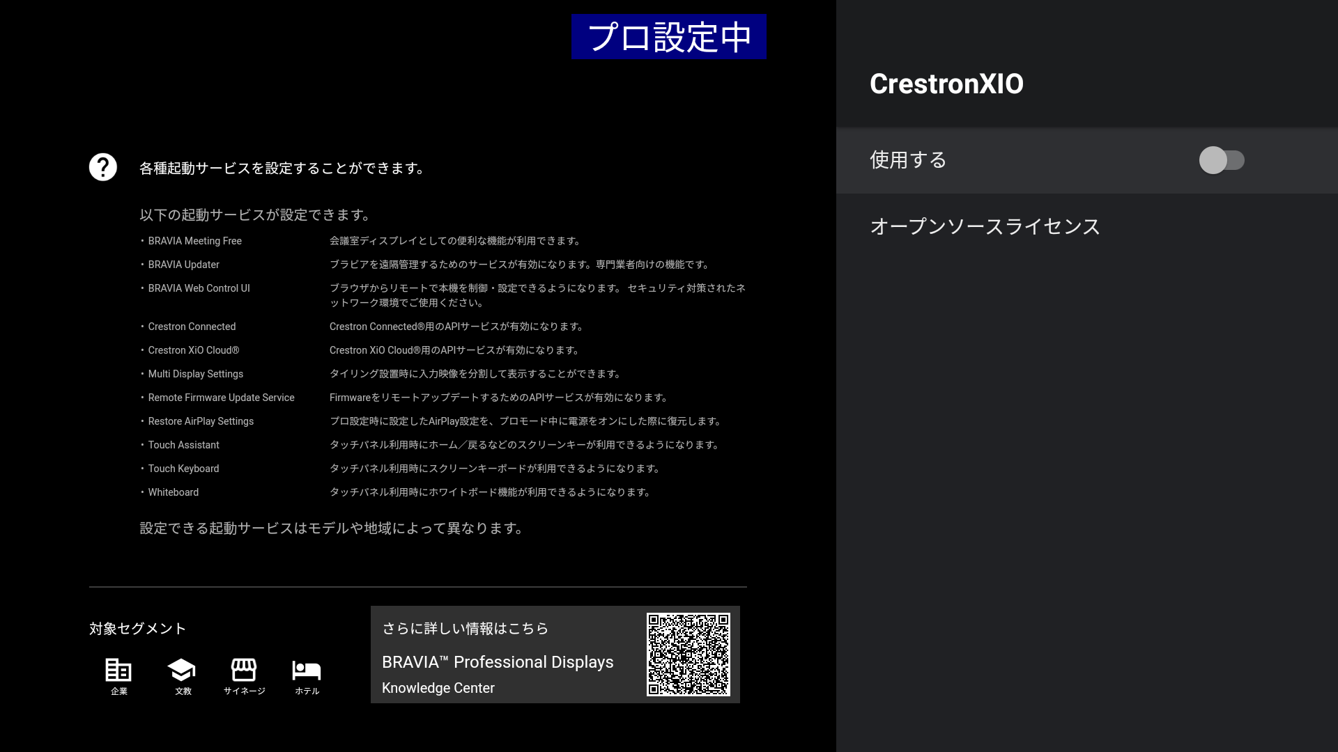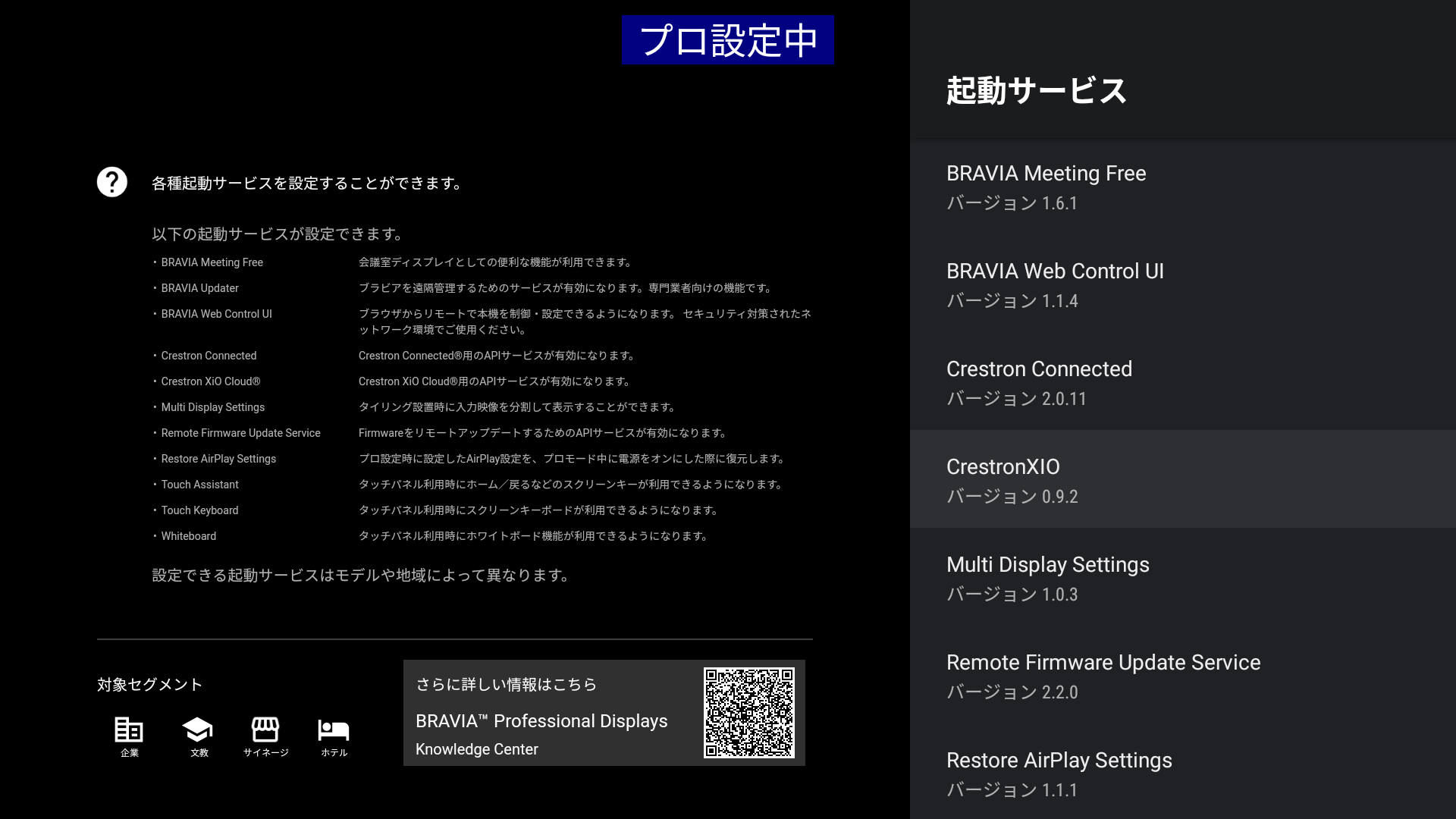 プロ設定の 起動サービス で、Crestron XIOを選択します。