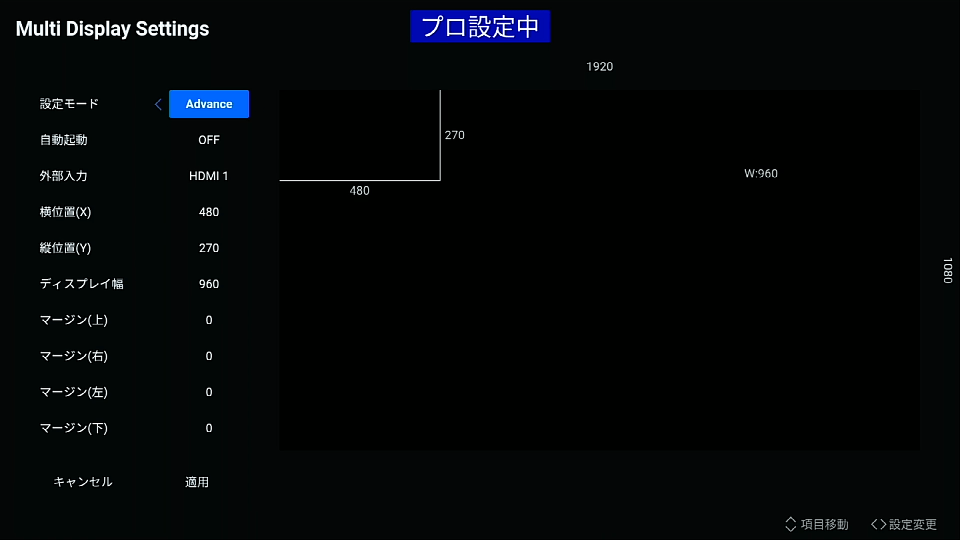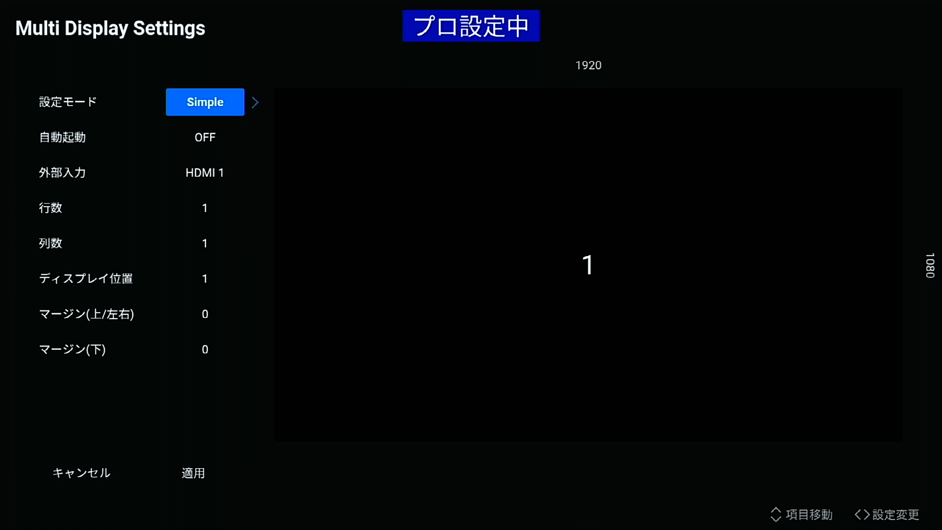 ディスプレイ位置 1 ~ 25 ディスプレイが表示する分割箇所を指定します。行数・列数の値が変更されて設定していたディスプレイ位置が無くなった場合は、表示される最後のディスプレイ位置の値に変わります。