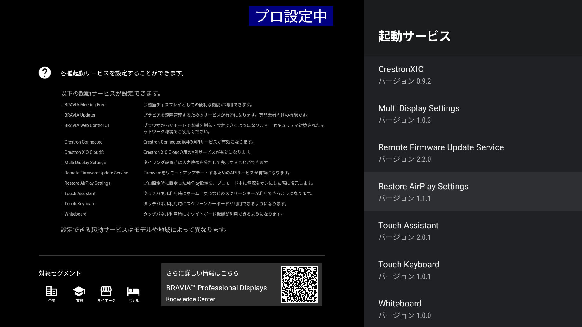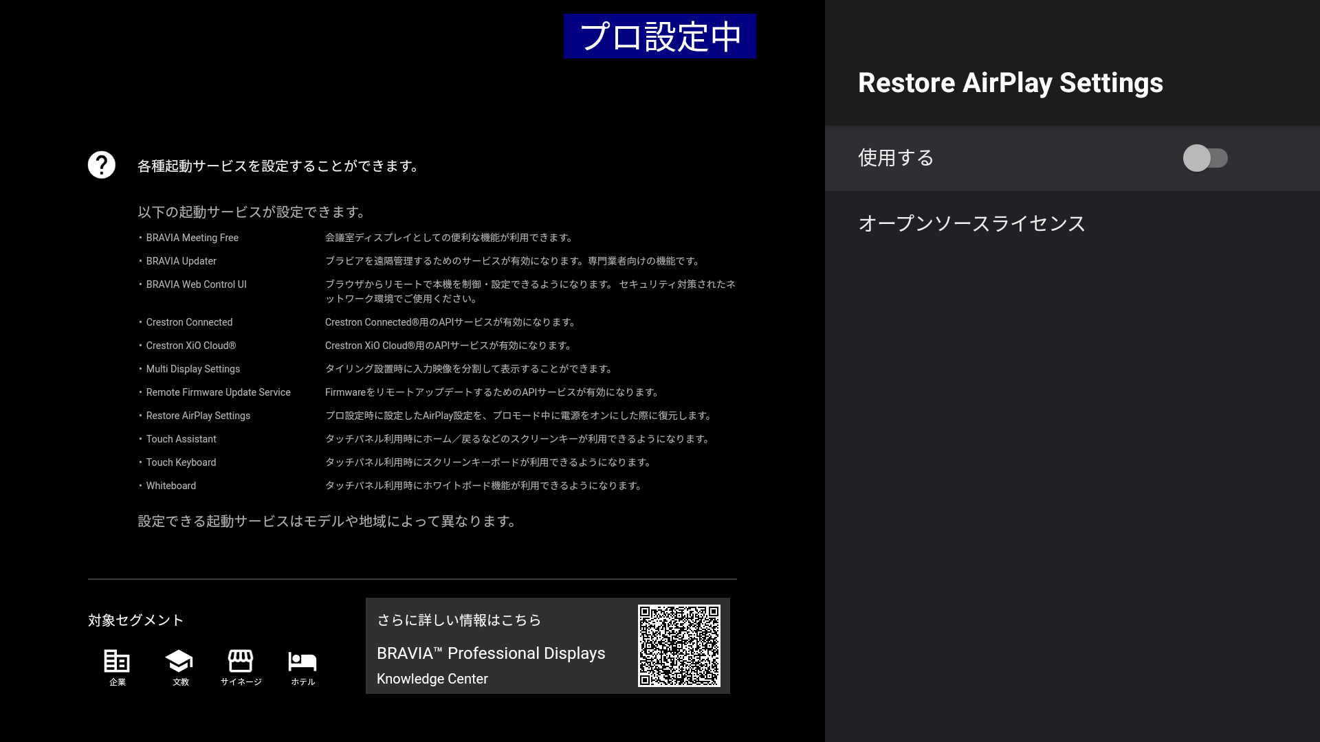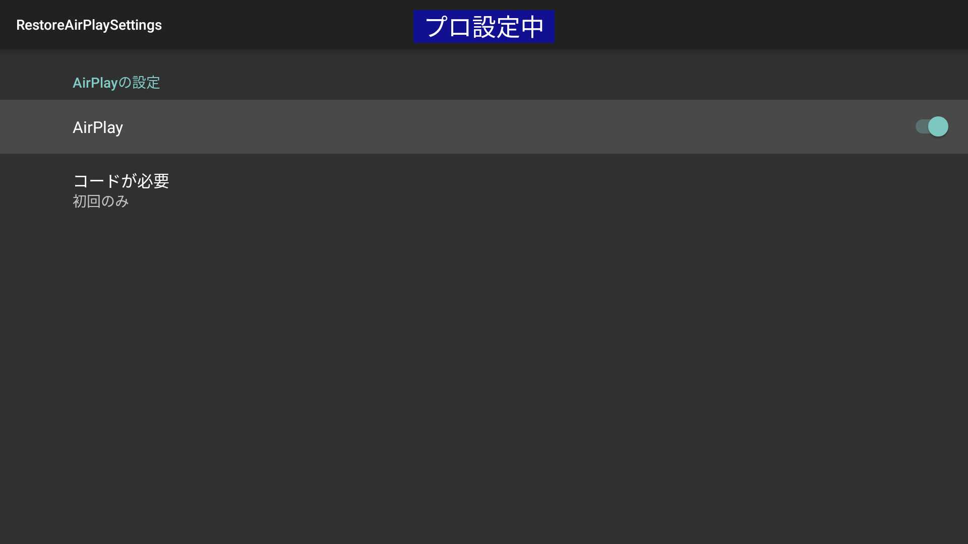 プロ設定時に設定したAirPlay設定を、プロモード中に電源をオンした際に復元します。