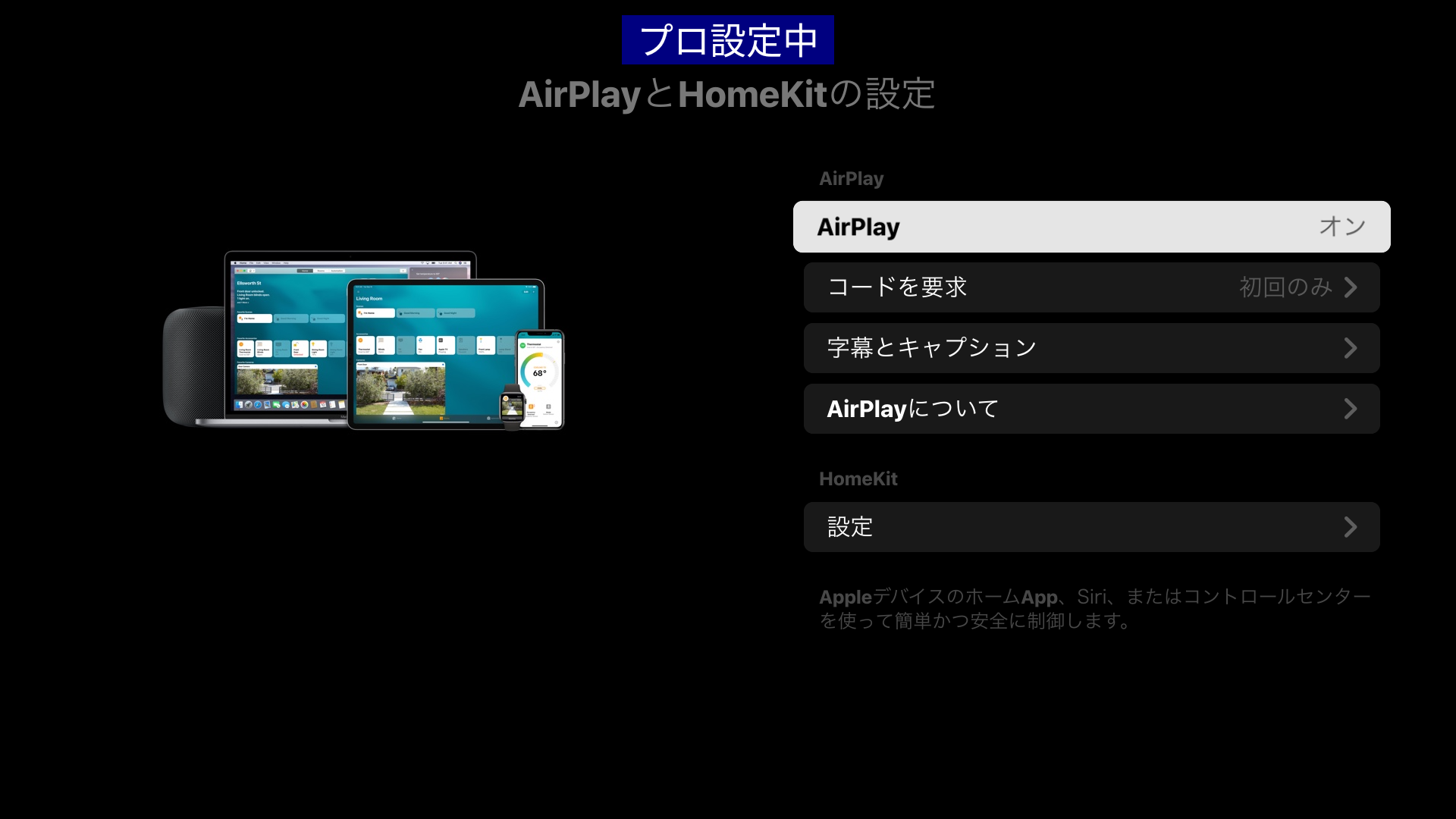 - プロモードに遷移すると、電源をオンした際にAirPlayの設定が復元されます。